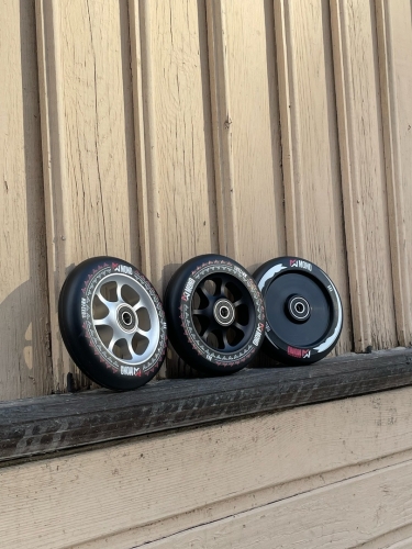 Прислушиваясь к райдерам, нами было принято решение сделать невероятно мягкие колёса. Их плавность хода поражает воображение, вам больше не страшны мелкие неровности, а сцепление с дорогой удивит даже самого искушённого. Диск из анодированного алюминия 6061 T-6 переживёт все ваши дропы, в свою очередь полиуретановая часть с мягкостью 84а поможет сохранить в целости ваши конечности. Да, на заводе вышла ошибка, а потому, вместо истинных 84а на коробке и колёсах надпись 88а.