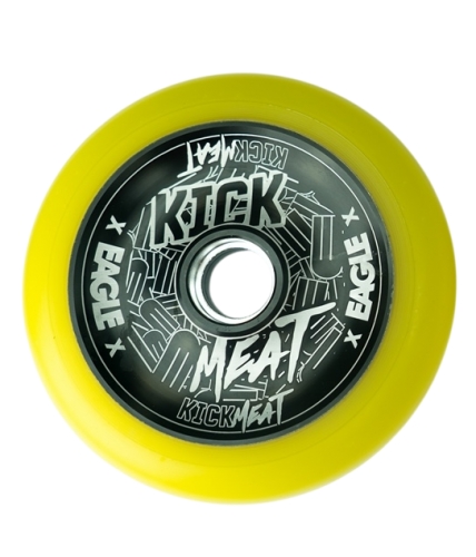 Колёса для трюкового самоката состоят из алюминиевого диска и внешнего покрытия из прочного, упругого полиуретана. В диске колеса для самоката установлены 2 подшипника и спейсер. Диски делятся на полностью закрытые и полые внутри, и диски со спицами. Покрытие из полиуретана имеет два варианта классификации жесткости 86А и 88А. Существуют колёса для экстремального самоката диаметром 100, 110, 115, 120 и 125 мм, и шириной 24, 28 и 30 мм. Наиболее популярный размер 110 х 24 мм. Так же при выборе колёс для трюкового самоката нужно ориентироваться на их совместимость с вилкой и декой. Например колёса с размерами 125 х 30 мм комплектуются увеличенными подшипниками 12 стандарта, поэтому для их установки необходимы оси 12 стандарта.